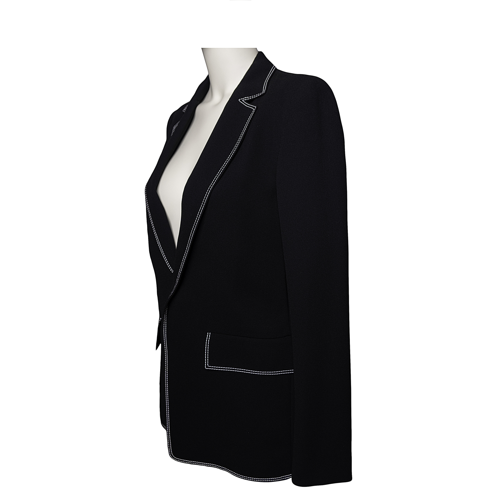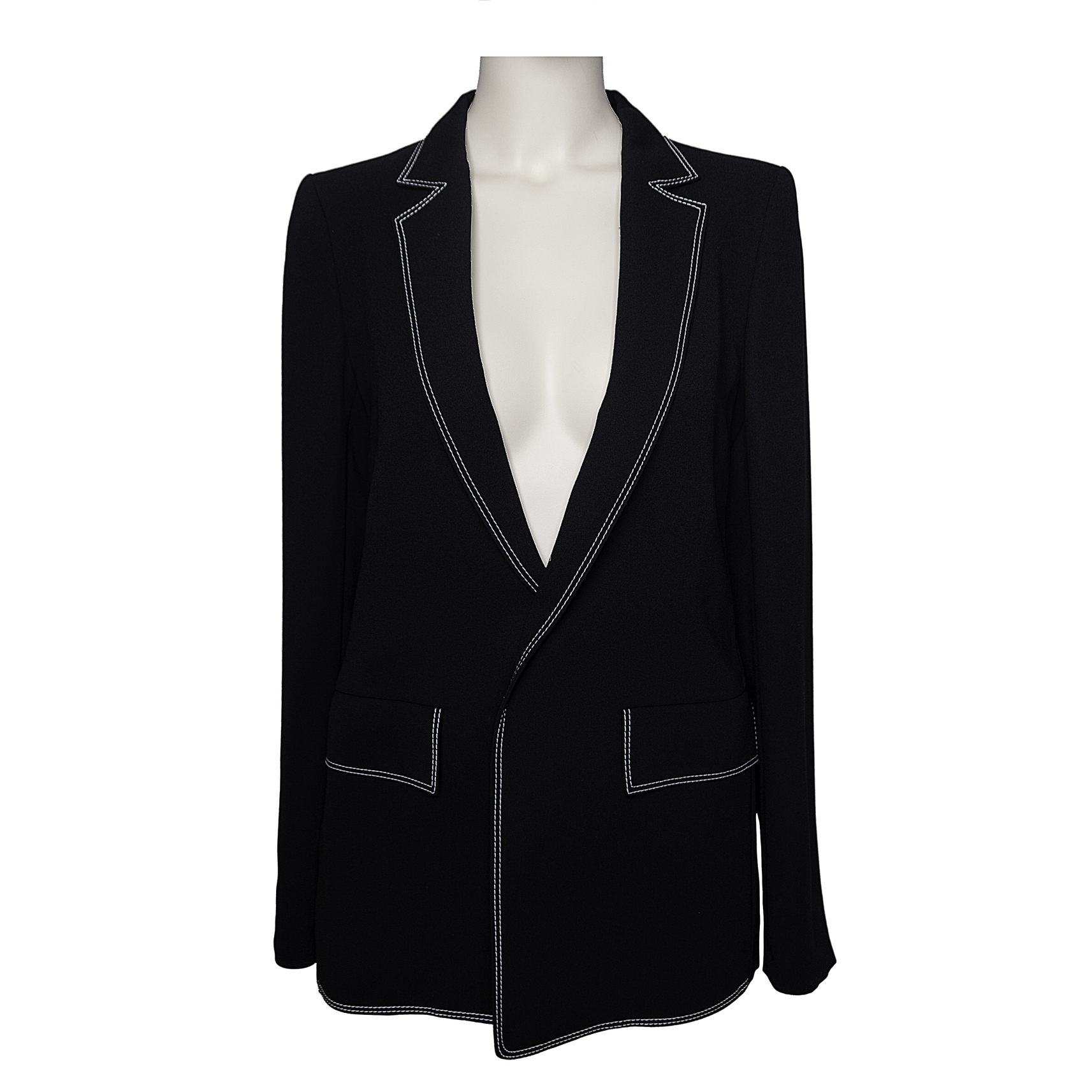 Жакет чорний з оздобленням подвійним контрастним білим швом